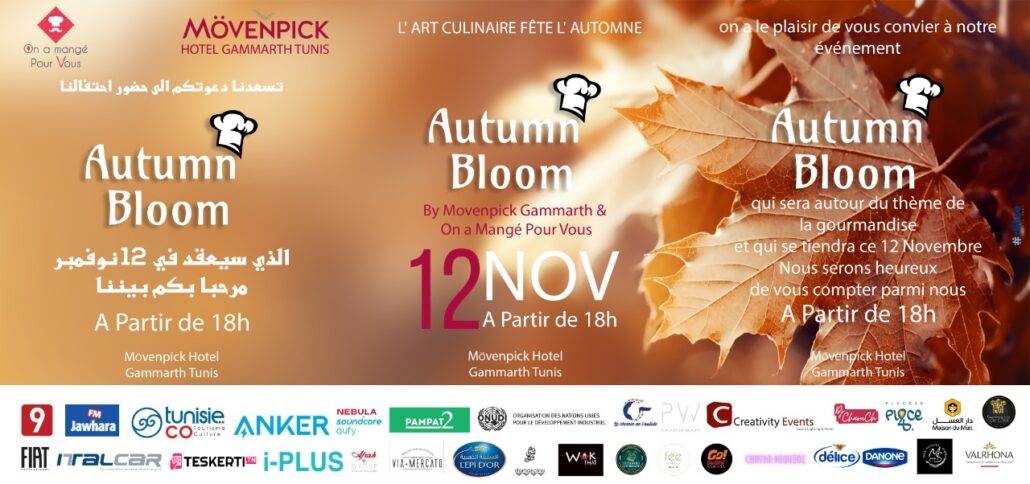 L’événement Autum bloom by On a mangé pour vous and Mövenpick Hotel Gammarth aura lieu le Samedi 12 Novembre à partir de 18h.
