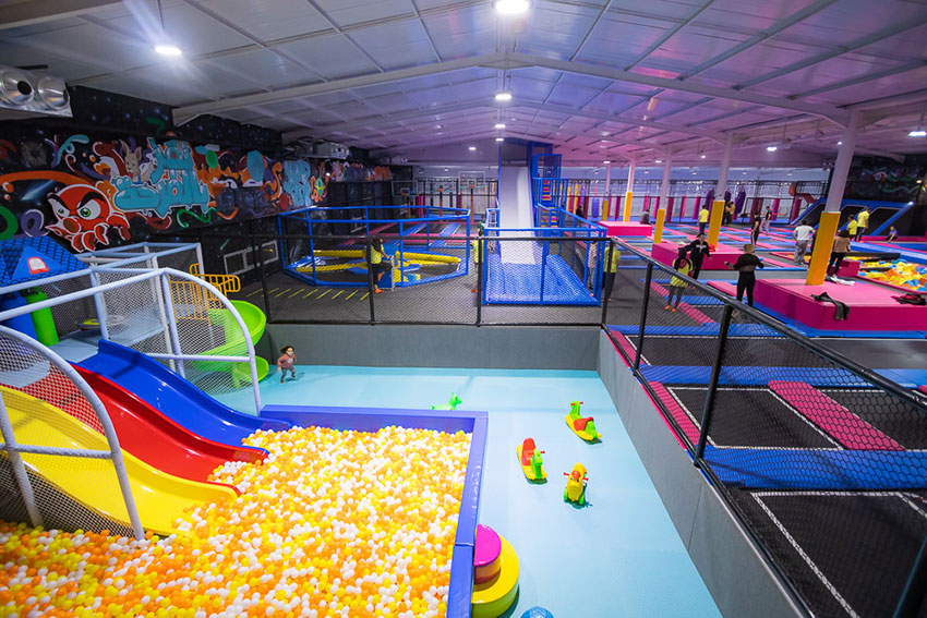 De l’espace dédié au basketball trampoline, en passant par une fosse remplie de cubes en mousse, un court principal de saut libre, le walk on walls, (saut sur les murs) avec des trampolines inclinés, toboggan, twister, battle team Laser Room…le parc offre une panoplie d’autres activités.