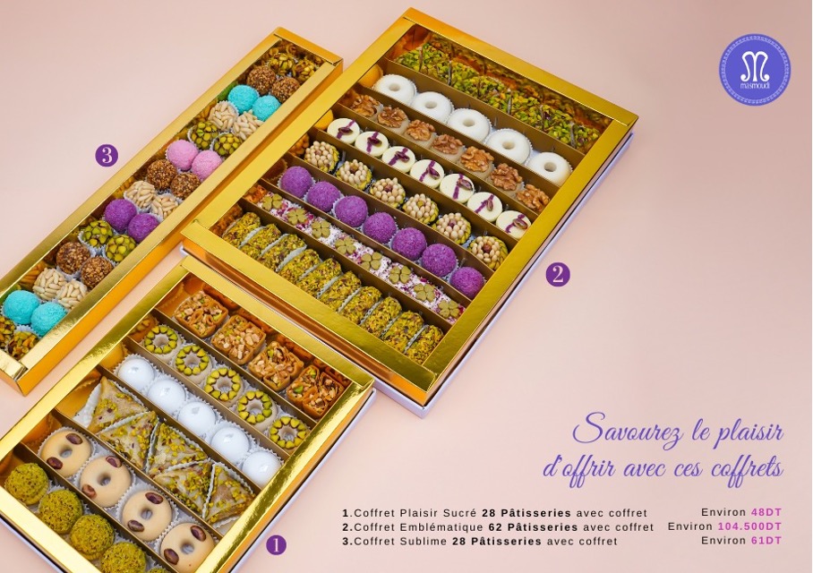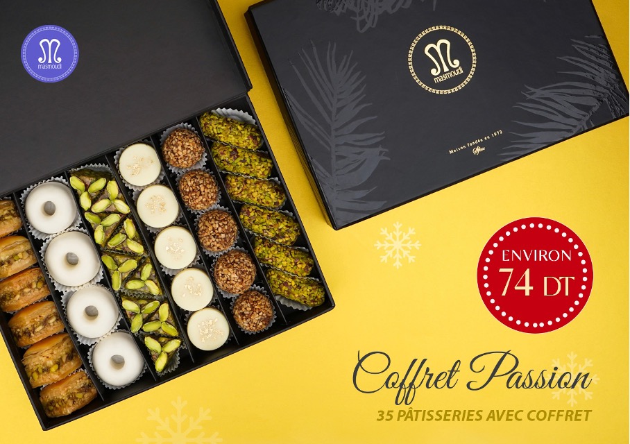 Coffret MasmoudiCes délices si joliment et finement emballés sont, à s’offrir et à offrir, dans tous les points de vente Masmoudi, du grand Tunis, Gabès, Djerba, Nabeul, Bizerte, Sfax, Sousse, et même à l’aéroport de Tunis Carthage.