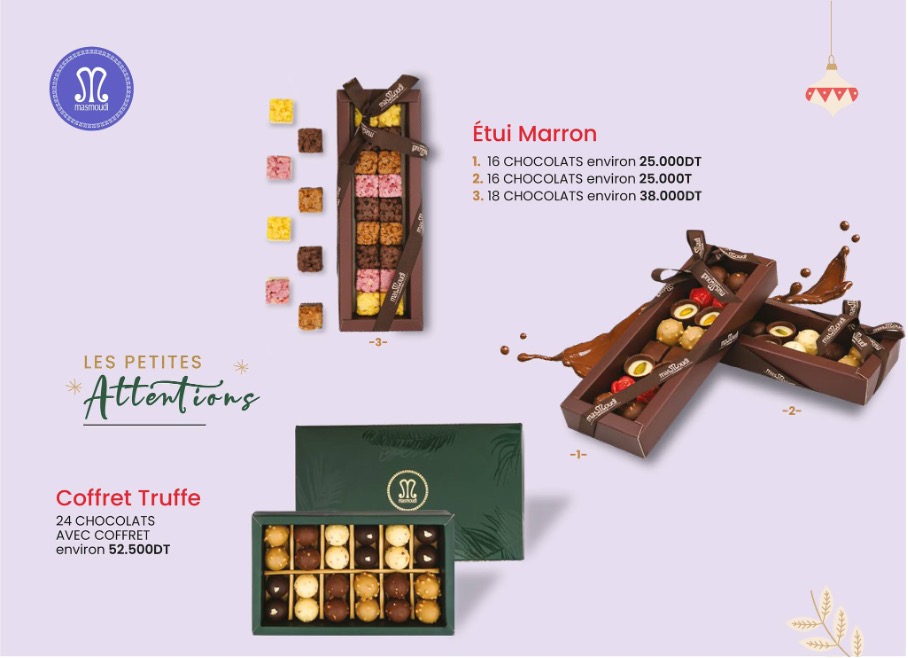 Masmoudi, la maison mythique de pâtisseries aux couleurs des violettes et des Lilas,  célèbre cette année son 50ème anniversaire. Et pour marquer cette occasion,  durant ces deux dernières semaines de festivités en 2022, elle nous dévoile ses coffrets cadeaux: entre chocolats et pâtisseries traditionnelles, chacun trouvera son plaisir.