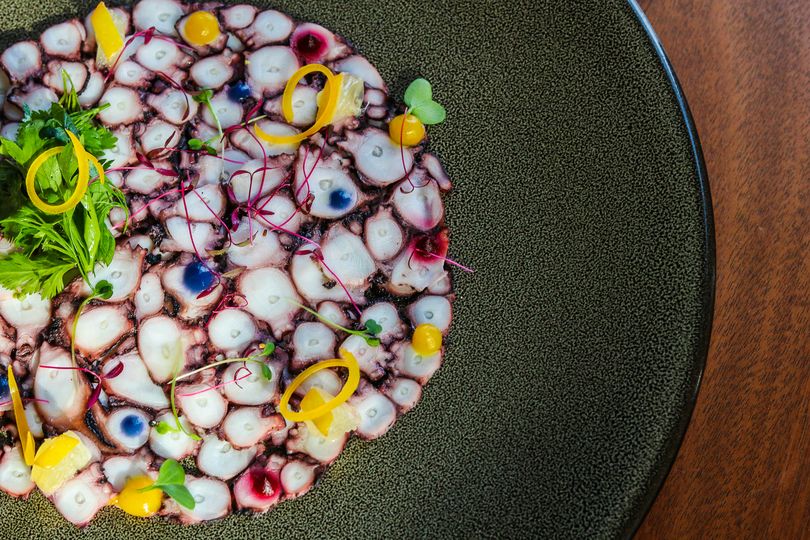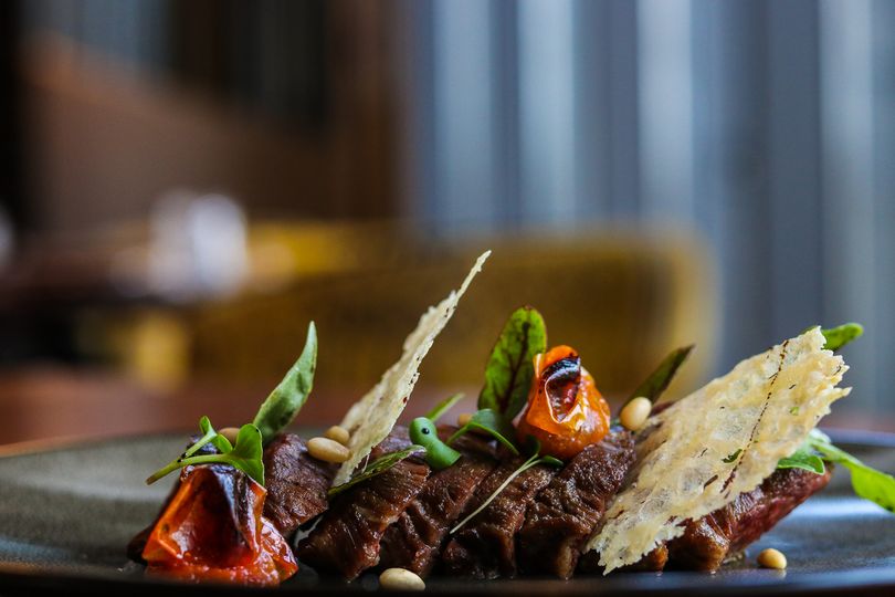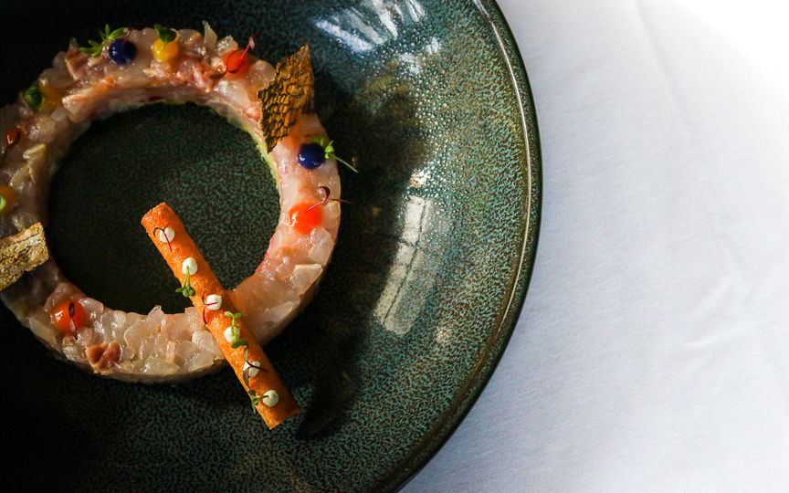 Laissez-vous tenter par le fameux Carpaccio de Bar tiède à la salamandre, avec une touche colorée de coriandre et de citron vert agrémenté d’huile d’olive.