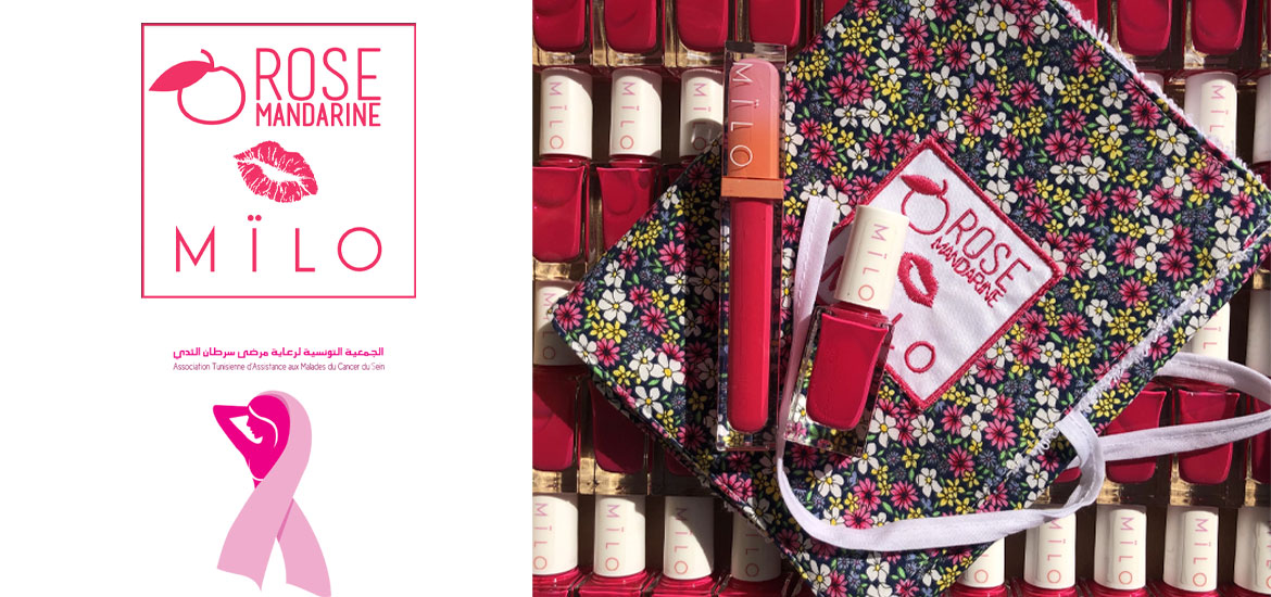Issues de deux univers distincts mais aux valeurs communes ( Rose Mandarine, marque éthique de créateur dédiée à la famille, et MÏLO Cosmetics, jeune marque de cosmétiques Vegan& Cruelty free ), les deux marques tunisiennes ont choisi l’ATAMCS, association tunisienne d’assistance aux malades du cancer du sein pour lancer cette collab’ beauté.