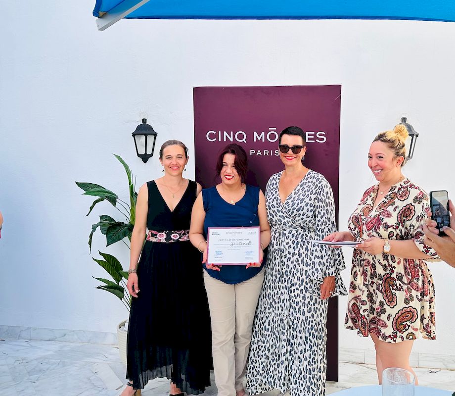 La formation business, dispensée par la SNOW Academy, a été conçue sur mesure pour répondre aux besoins spécifiques des Spa Managers de CINQ MONDES en Tunisie. La présence de Mme Cécile Troude, Directrice Pédagogique de la SNOW Academy et experte reconnue dans le domaine de la gestion des spas, a garanti l’excellence de cette formation.