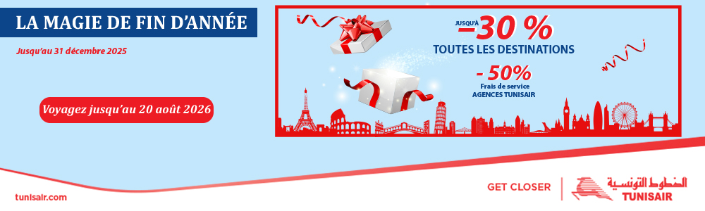 HomeAdTunisair fin de l’année 2025 Déc. 25, 2025 at 12:39 pmTunisair fin de l’année 2025Jihene Ben Hassine3 jours agoNo tags share on Facebookshare on TwitterTijen fin d’année 2025